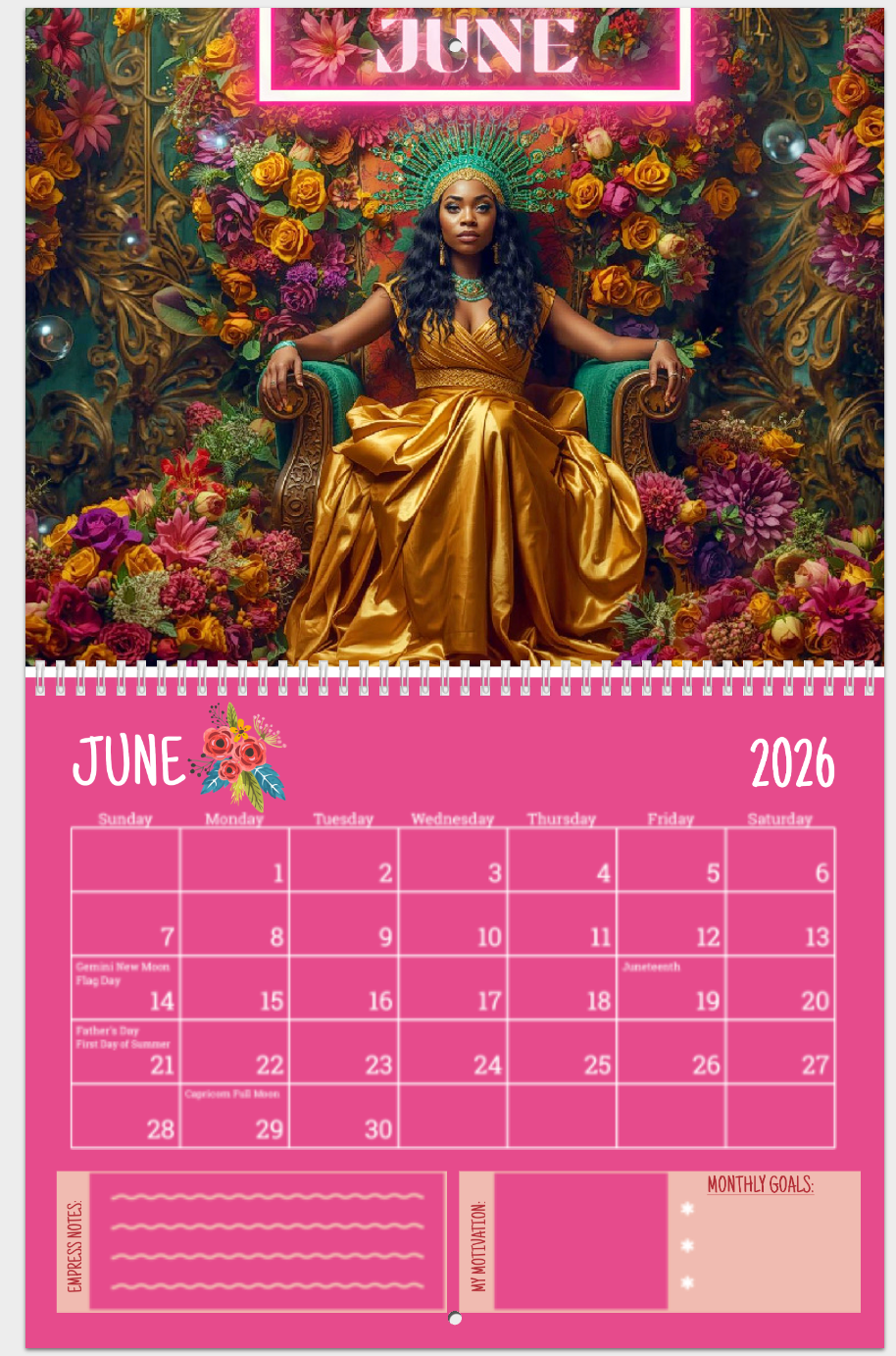 Introducing our 2026 EMPRESS WALL CALENDARS! These unique custom calendars feature 12 undeniably GORGEOUS Empresses sitting confidently on their thrones, rulers of their own domains and fully in control of their own realities. Experience the REGAL💜 nature these calendars bring to ANY environment as a BOLD expression of the Divine Empress Energy 👑 within YOU! 🥰💕
